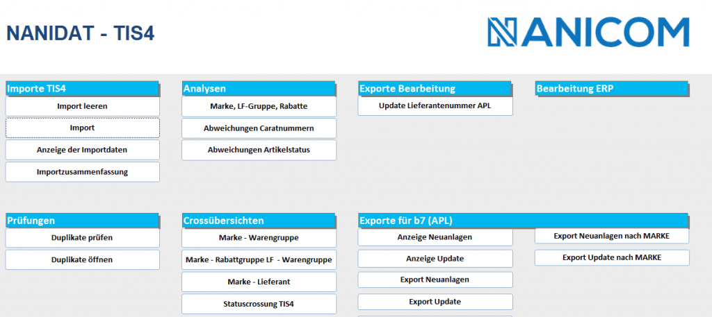 NANICOM ist bestrebt Sie bestmöglich im Bereich Datenmanagement und BI-Entwicklung zu unterstützen. Unsere Mission ist es, Unternehmen dabei zu unterstützen, ihre Daten effizient zu verwalten und wertvolle Erkenntnisse zu gewinnen, die zu besseren Geschäftsentscheidungen führen. Unsere Konvertierungstools helfen Ihnen dabei die externen Stammdaten effizient und hochqualitativ in Ihr ERP-System zu überführen.